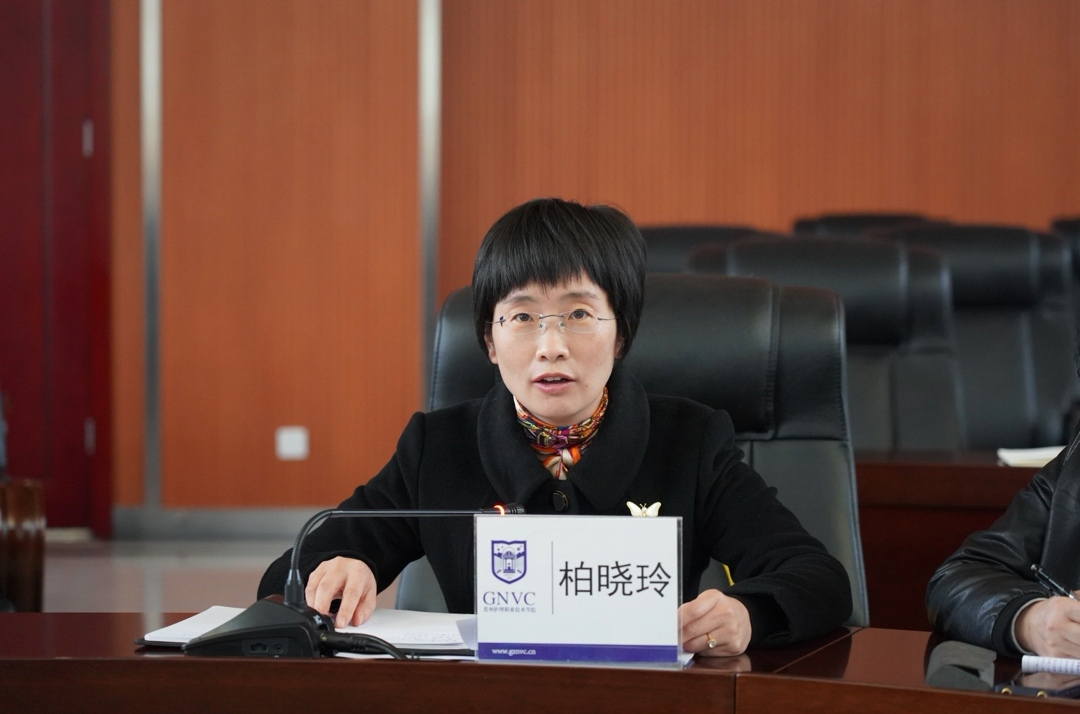 柏晓玲作工作部署讲话,她要求各工作组全面落实办赛要求,高质量承办好比赛,此次承办工作是展示我院师生综合实力的重要平台与窗口,各工作小组应制定防控应急预案,相互配合,保障比赛圆满完成。