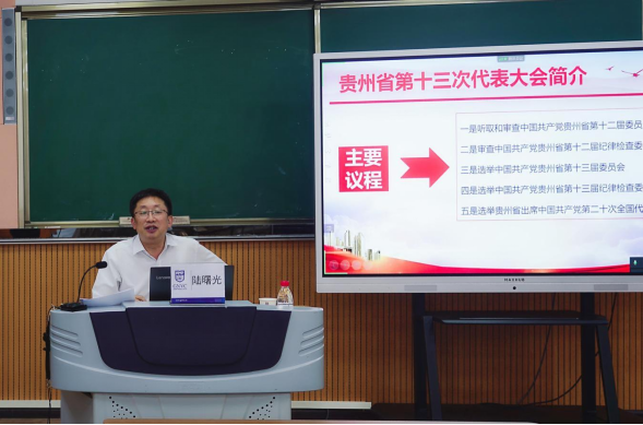 本次培训还邀请到了贵州省文史馆特约研究员陆曙光到学院向大家解读贵州省第十三次党代会精神。他结合自身所研究的领域及工作经历,以生动的实例和大量的实证数据,为我们全面系统地讲述了省第十三次党代会的精神实质和深刻内涵,激发了大家牢记嘱托、感恩奋进、艰苦奋斗、顽强拼搏的斗志。