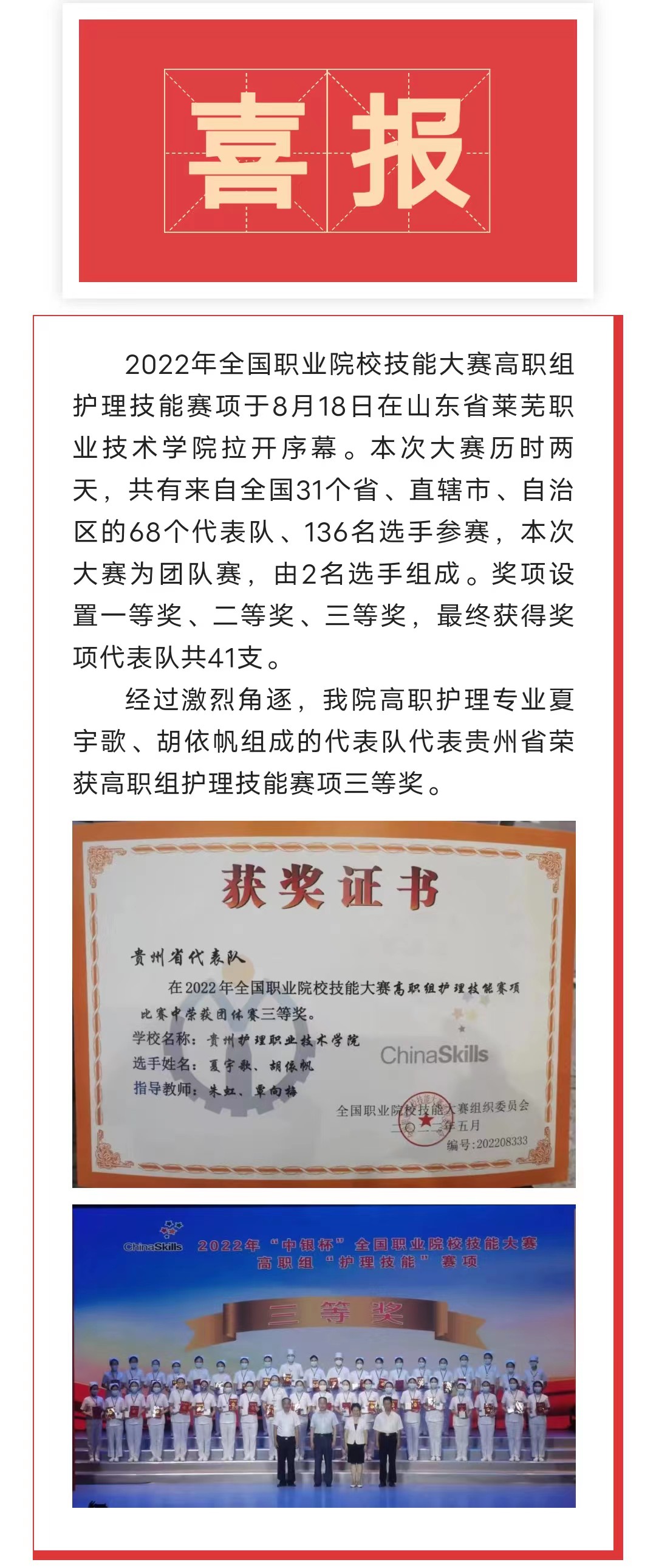【喜报】伟德荣获2022年“中银杯”全国职业院校技能大赛高职组“护理技能”赛项 三等奖