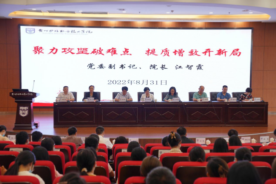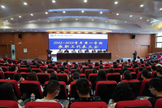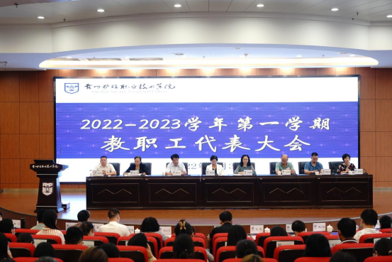 8月31日下午,伟德在金海校区学术交流中心召开2022-2023学年第一学期教职工代表大会。学院党委书记黄亚励,党委副书记、院长江智霞及其他领导班子成员出席会议,各系(部、中心)、处(临时)负责人及全体教职工(后勤处代表)参加会议。会议由党委副书记吴忠红主持。