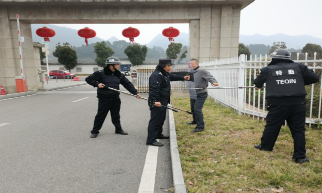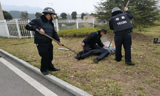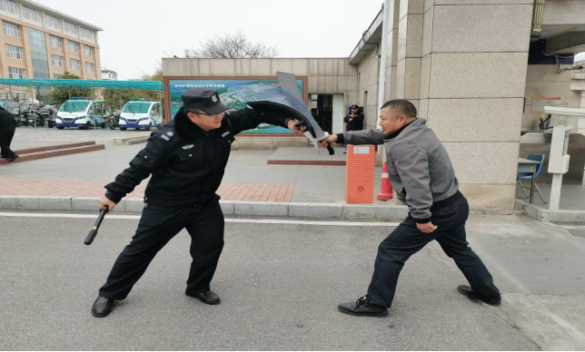 演练前,教员对全体人员进行了反恐安全培训,并结合案例讲解了突发事件中一键式报警器、警棍、盾牌等防暴器械的使用方法及常用的防护技巧。紧接着,展开了一场与“暴力分子”搏斗的模拟场景,在实战演练中掌握安保器械的使用及预防的技能。