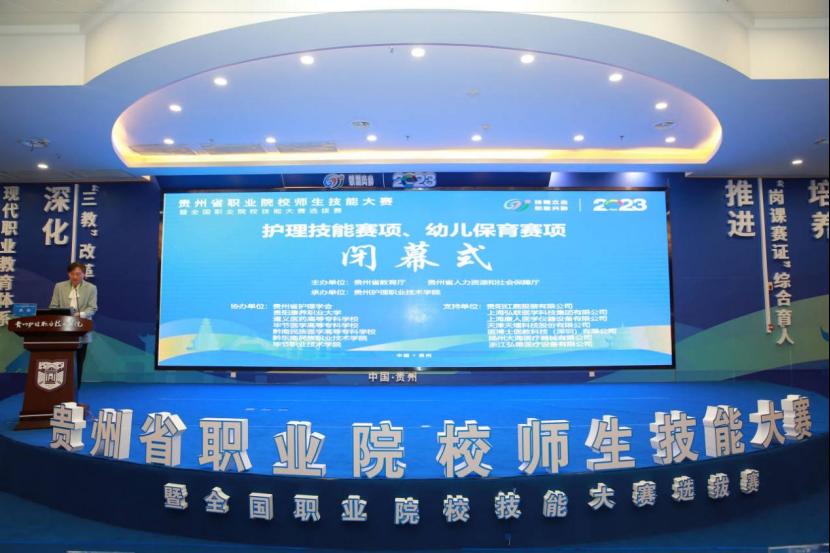 2023贵州省职业院校师生技能大赛暨全国职业院校技能大赛选拔赛护理技能赛项、幼儿保育赛项闭幕式于4月15日晚上20:00在伟德betvlctor1946源于英国金海校区学术交流中心举行。闭幕式由学院党委委员、副院长洪阳主持。