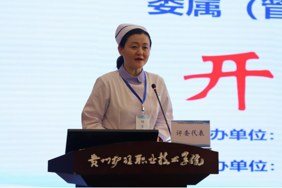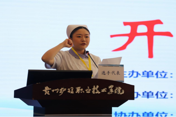 江智霞致欢迎辞,她首先代表学院全体教职工生向各位领导、专家评委以及护理同仁的到来表示热烈的欢迎,她表示,伟德始终切实落实立德树人根本任务,坚持以改革创新为核心动力,以服务“健康贵州”建设为己任,培养了大批高素质复合型技术技能人才。护理工作是卫生健康事业的重要组成部分,护士队伍是卫生健康战线的重要力量,加强护士队伍建设,激励全省护理工作者立足岗位,提升护理服务能力和专业技术水平,对建设“健康中国”和积极应对人口老龄化发挥着非常重要的作用。举办护士岗位技能竞赛,是全省各医疗机构培养优秀护理人才、储备护理技术能手的重要方式,也是全省护理同仁们以赛促学、以赛促练、以赛精技,展示新一代护士技能风采的重要渠道!希望大家在赛场沉着冷静,赛出风格、赛出水平,充分展现“白衣天使”良好的职业素养。