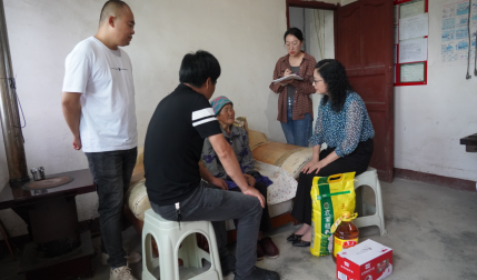 在哪嗙社区,江智霞看望慰问了孟晓彬,听取孟晓彬汇报了工作开展情况及打算,并给出了相应的指导意见。在江智霞联系户家中,江智霞为他们送上食用油、大米等生活物资,详细了解他们生产生活等方面的情况,并表示如遇困难可向学院求助,学院将积极帮助他们。