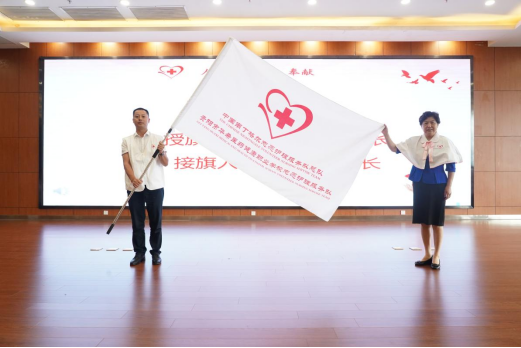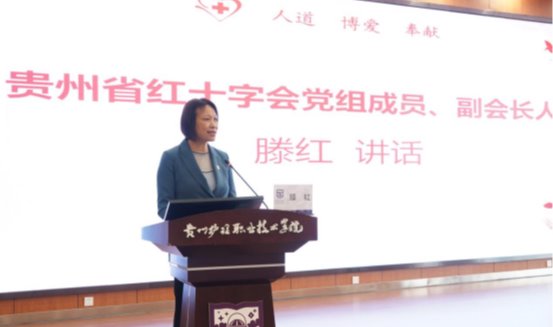 张利岩为贵阳市华希医药健康职业学校志愿护理服务队授旗
