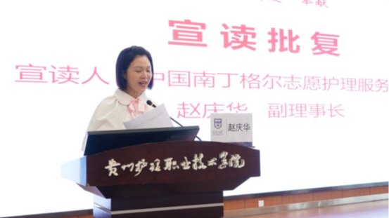 中国南丁格尔志愿护理服务总队副理事长赵庆华宣读批复