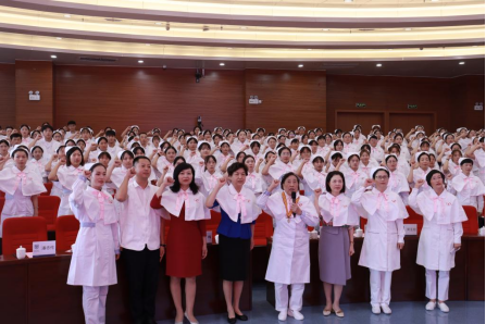 苏雅香教授带领全体志愿者庄严宣誓:“我志愿成为一名光荣的护理志愿者,以南丁格尔为榜样,以红十字精神为准则,尽己所能,帮助他人......”铮铮誓言,彰显了与会志愿者践行使命的决心。
