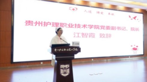 中国南丁格尔志愿护理服务总队理事长、第43届南丁格尔奖获得者张利岩,中国南丁格尔志愿护理服务总队副理事长、第45届南丁格尔奖获得者赵庆华,中国南丁格尔志愿护理服务总队副秘书长何梅、第39届南丁格尔奖获得者、原贵州省人民医院护理部主任、省护理学会理事长苏雅香,省卫生健康委员会党组成员、副主任张巍,省红十字会党组成员、副会长滕红,省红十字会组织宣传部部长匡传益,贵阳市华希医药健康职业学校校长周小进、副校长陈悦,伟德betvlctor1946源于英国党委书记黄亚励,党委副书记、院长江智霞,党委委员、副院长徐晓筑、潘忠伦,党委委员、纪委书记杨伯兵出席仪式。来自伟德betvlctor1946源于英国和贵阳市华希医药健康职业学校志愿者代表共230余人参加仪式,伟德betvlctor1946源于英国党委委员、副院长柏晓玲主持仪式。