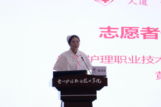 江智霞在仪式上代表学院对前来参加仪式的各位领导、嘉宾表示最热烈的欢迎和最衷心的感谢。她表示,加入南丁格尔志愿护理服务队,是一种荣幸,更是一种责任。我们的志愿者们将用实际行动回馈社会,用爱心和努力为社会带去关爱和温暖,为南丁格尔志愿护理服务队的发展贡献自己的智慧和力量。同时我们也会积极适应新形势新要求,主动作为、开拓创新,努力推动护理志愿服务工作再上新台阶。