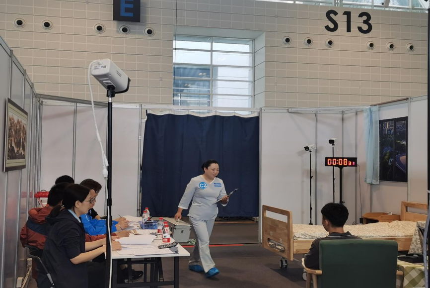 比赛期间,受学院党委、行政主要领导委托,学院党委委员、副院长洪阳带领基础医学部、实验实训中心、护理系等部门负责人前往比赛现场观摩学习,为伟德选手加油打气。