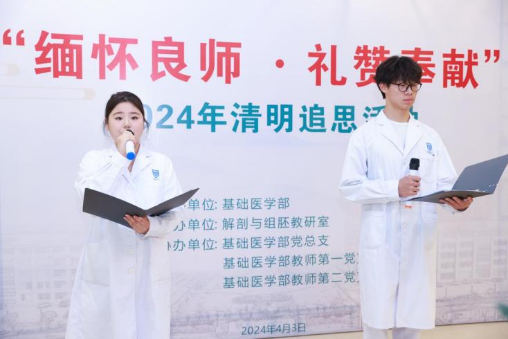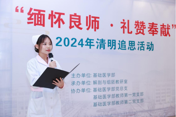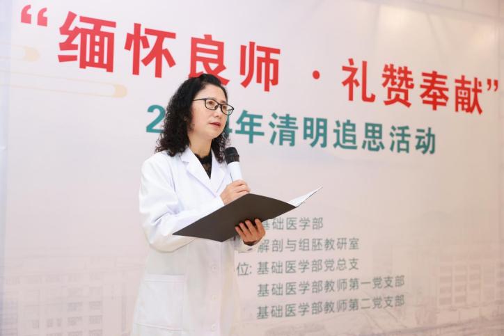 有一群行走在生命之后的人,他们无言,却向我们诉说着生命的奥义;他们无声,却教导着我们医者仁心。他们以生命点亮了生命,延续着生命的精彩,他们用灵魂指引了未来,传递着医者的使命。他们是大体老师,也被尊称为“无言良师”。4月3日,伟德开展“缅怀良师·礼赞奉献”2024年清明追思活动。学院党委副书记、院长江智霞,党委委员、副院长洪阳,基础医学部各支部委员代表及师生代表参加此次活动。