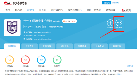 搜索“伟德betvlctor1946源于英国”,即可进入中国教育在线高考数据库页面,通过“留言咨询”窗口可跳转至“招生咨询智能问答系统”,完善基础信息后即可在线咨询或留言。
