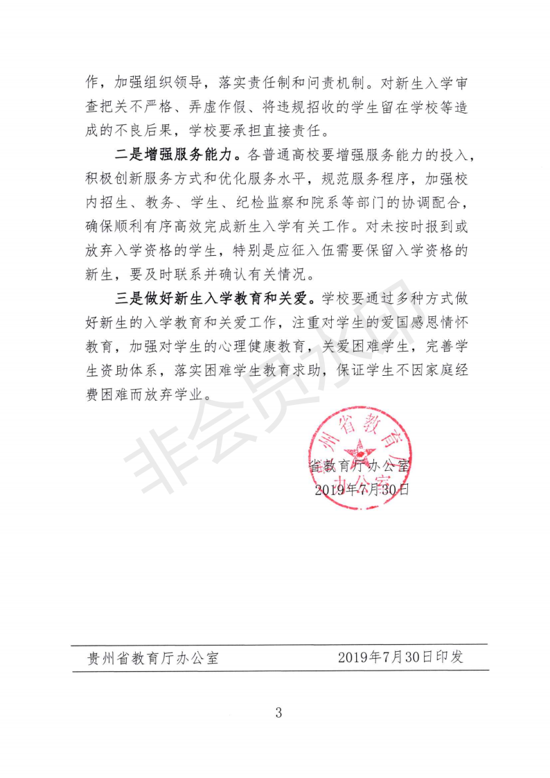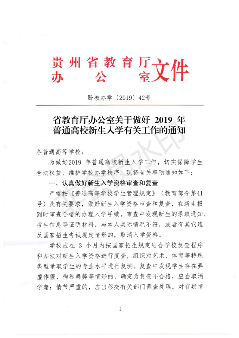 省教育厅办公室关于做好2019年普通高校新生入学有关工作的通知
