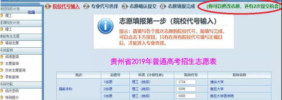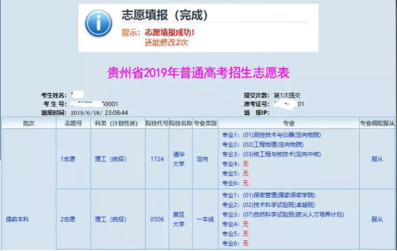 考生应认真细致填报志愿,核对准确后提交。考生提交志愿后,在志愿填报系统未关闭前,若发现填报志愿有误,可以进行修改,但修改不能超过2次,系统以考生最后一次提交的志愿为准。提交三次志愿后不能再修改志愿。