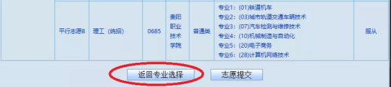 在检查过程中如果发现错误,请点击页面下方的“返回专业选择”按钮进行修改。(图-18)