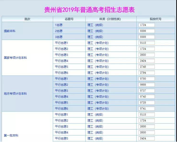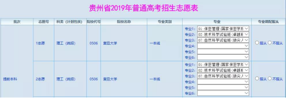 考生在网上填报志愿之前,要认真仔细阅读《贵州省 2019 年高考高校招生专业目录》,经认真考虑后填写《贵州省 2019 年高考志愿纸质样表》,对照填写的《贵州省 2019 年高考志愿纸质样表》进行网上填报志愿,以提高网上填报志愿的效率和准确度。