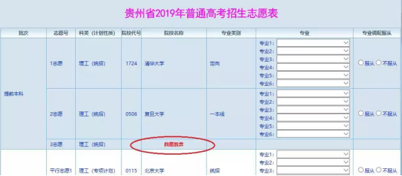 (四)每个批次的院校志愿都设有“愿否服从专业调剂”栏,请考生认真思考,表明意愿。