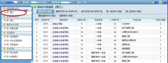 “浏览院校计划”列表将根据考生高考报名的科类,显示出文史、理工、艺术、体育(文)、体育(理)等选项(图-4)。点击相应的科类名称,就可浏览该科类院校的计划。右边上方为该科类本次可以填报的所有批次选项,考生可以选择按批次查看,通过点击下方页码翻页。