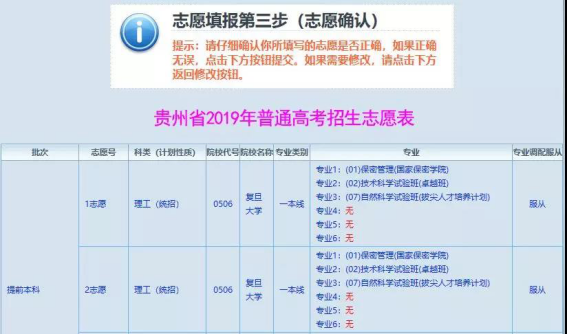 11.考生在志愿确认页面中再次核对所填志愿,确保正确无误(图-17)。