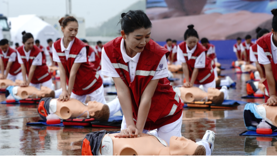 “及时的心肺复苏,可保证患者重获心脏泵血与肺部呼吸换气的宝贵机会,赢得与死神的赛跑。我们今天的展演是贵州省全民健康素养提升的其中一项,主要是面对公众普及心脏复苏知识,尽可能更好地保护每一位患者。”担任此次演练教练的省紧急医学救援调度中心质控科赖景贵说。