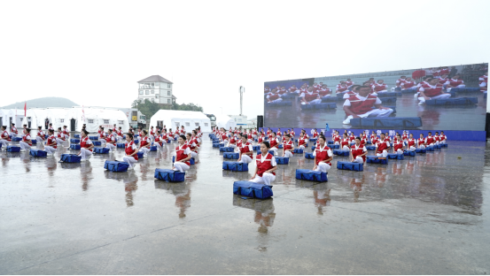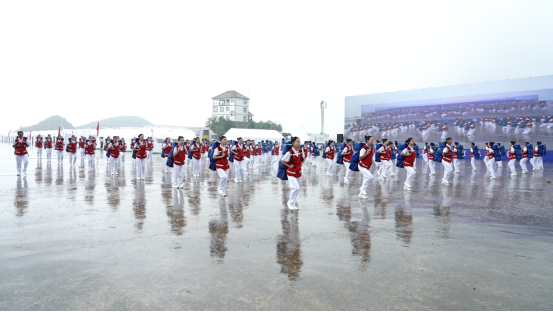 随着洪亮的口号响起,伟德100名学生开启今日活动第一场技能展演,现场虽天降暴雨,但所有学生临危不乱,个个神采奕奕、精神饱满,有条不紊地进行演练。