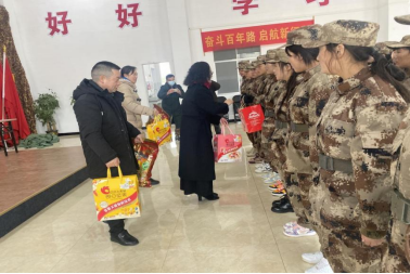 西藏班同学们经过十天的努力训练,不畏辛苦与考验,不断追求和提升自我,已初具军人的模样。江智霞对军训初显的成果给予了肯定,在新春佳节即将来临之际,她代表学院党委行政看望慰问西藏班同学们,并希望同学们深刻理解“故天降大任于斯人也,必先苦其心志,劳其筋骨,饿其体肤”的至真至理,同时也向付出辛劳的教官们表示诚挚地感谢,祝福教官及工作人员春节快乐。