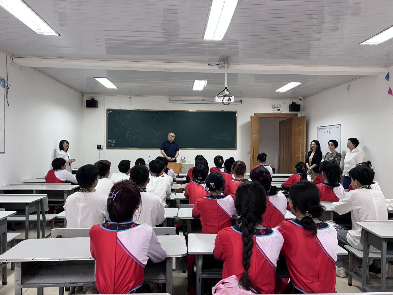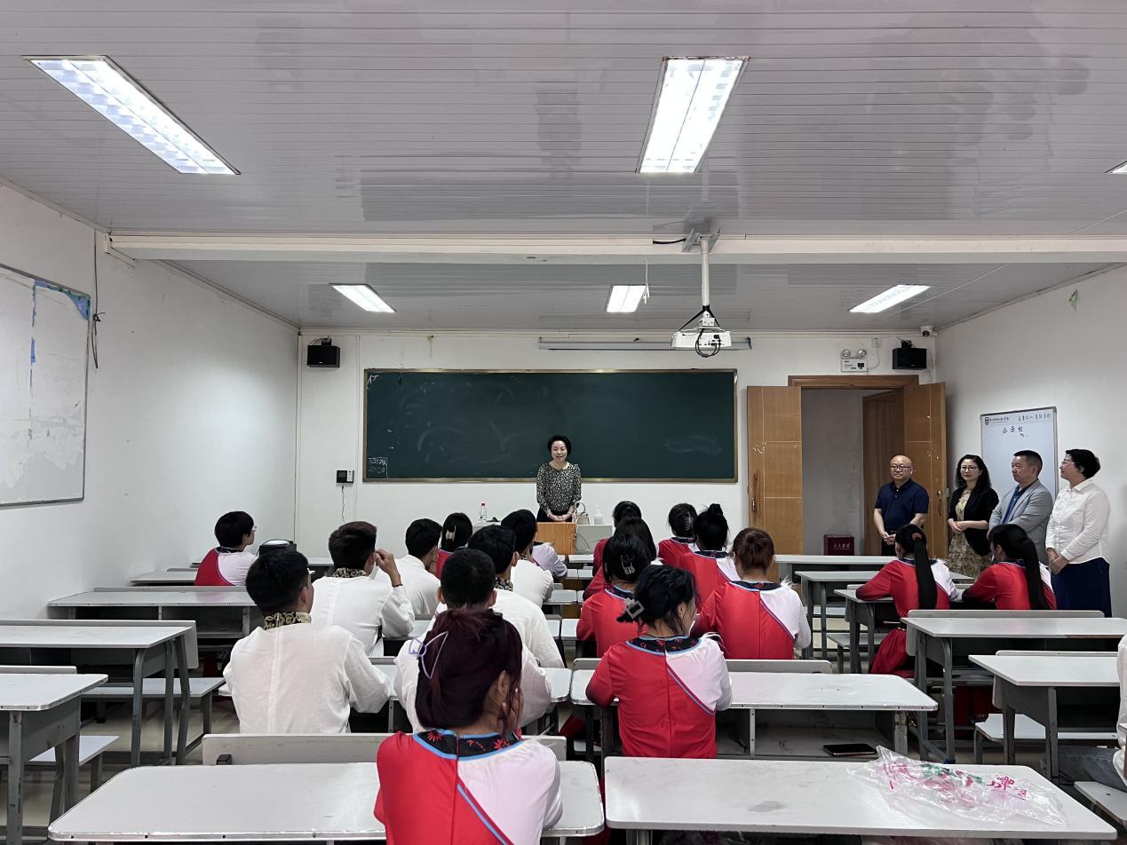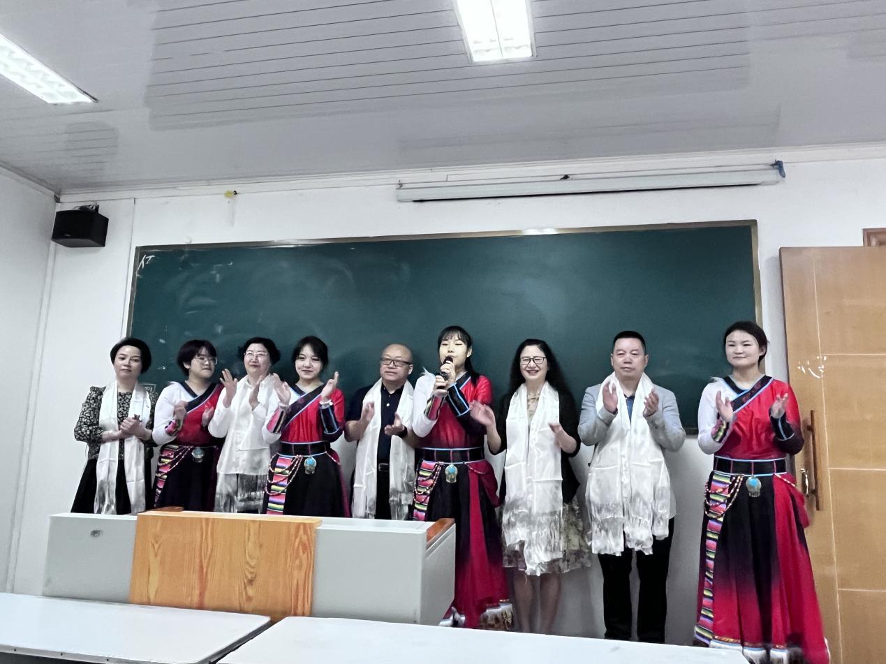 索南曲珍代表西藏班全体同学发言,她表示三年来在学院领导和全院教职工的培育与教导下,在全院同学们的热情帮助下,各方面得到了很大的提升,诚挚邀请大家逸享美好时光、做客大美西藏。西藏班同学们以深情饱满和动听的歌声,再次唱响了《再唱山歌给党听》,献上了象征吉祥如意的洁白哈达,感恩之情溢于言表。