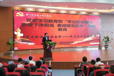 为深入学习贯彻全国、全省党史学习教育动员大会精神和习近平总书记视察贵州重要讲话精神,认真落实教育部党史学习教育动员大会、全省教育系统党史学习教育动员大会、省卫生健康委党史学习教育动员大会精神,3月30日下午,在金海校区学术交流中心扎实认真开展了“四史”学习读书班开班仪式与党史学习教育和“牢记殷切嘱托、忠诚干净担当、喜迎建党百年”专题教育学习活动。此次活动由党委副书记吴忠红主持。党委书记黄亚励讲授党史学习教育专题党课第一课。学院领导班子成员、全体党员、部门及科室负责人或临时负责人、教师代表及200余名学生代表参加共计300余人。