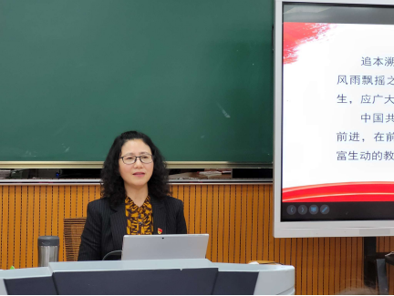 根据学院《关于庆祝“感恩奋进开新局 喜迎建党一百年”暨党史学习教育宣传活动方案》和《关于进一步加强和规范党委书记和班子成员建立党支部联系点工作的通知》文件精神,4月15日下午,学院党委副书记、院长江智霞为学院教职工生讲授题为《重温百年党史 汲取奋进力量》的专题党课。教师第一党支部及江智霞分管、联系部门学院办公室、实验实训中心、基础医学部和联系支部机关第一党支部全员到现场聆听,金海校区全体学生在教室通过直播收看。