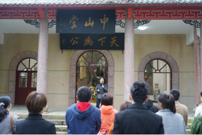基地中的中山堂是为纪念伟大的民族英雄、伟大的爱国主义者、中国民主革命的伟大先驱孙中山先生修建的。百余年前,孙中山先生喊出振兴中华的口号,为中华之富强鞠躬尽瘁。今天,参加活动的全体同志在此缅怀这位有着炽烈爱国主义、高尚民主精神和臻于富强愿望的伟人,提醒自己不忘孙中山先生"革命尚未成功,同志仍须努力"的遗志。