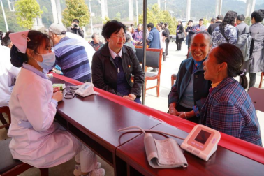 此次调研活动分为:一是看望慰问伟德一直奋斗在脱贫攻坚一线的纪委书记杨伯兵同志;二是开展爱民义诊和慢性病防治宣教;三是与三穗县宣传部、卫健局、教育局、县职校、村两委等负责人召开“巩固提升职教扶贫成果,持续助力乡村振兴”调研座谈会。座谈会上,伟德党委根据塘冲村完善公共卫生文化广场建设的急迫需求,举行了10万元专项建设资金的帮扶仪式。村两委会支书、主任杨秋红代表全村800多村民对伟德院领导一行的到来和此次调研活动表示感谢,同时代表全村保证会在规定时间内完成村卫生文化广场的建设。随后,杨伯兵同志对从2016年以来帮扶塘冲村至今在脱贫攻坚工作上取得的成果和2019年脱贫“清零”情况进行了汇报。座谈会上,伟德相关负责人与当地教育局详细了解了初高中毕业生就学的需求、中高职贯通培养及精准招生、精准培养和精准就业的需求,双方共同交流职业教育与大健康产业融合途径等方面的情况。