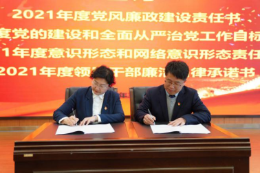 党委书记黄亚励与副书记吴忠红签订2021年全面从严治党工作责任书