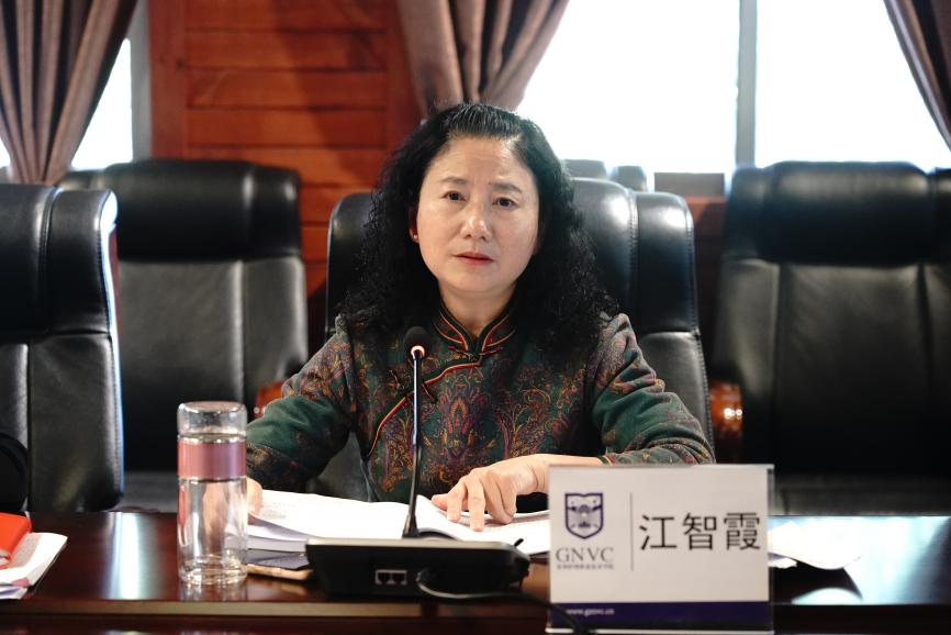 江智霞作题为《培根铸魂育新人 踔厉奋发谱新篇》的中心发言。她从“以忠诚为底色,党建引领促发展”“以人才强支撑,多措并举抓队伍”“以育人为根本,五育并举育新人”“以改革促发展,凝心聚力强内涵”“以交流拓视野,开放合作谱新章”五个方面,分享了自己的学习体会和推动学院高质量发展的深入思考。