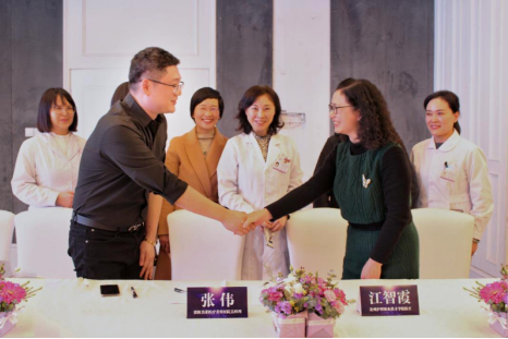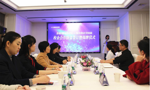 江智霞院长、张伟总经理代表双方进行了校企合作协议的签订及专科实习基地的揭牌。