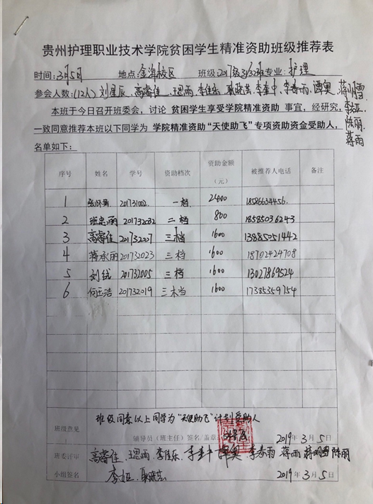 爱心点燃希望之光,资助成就成才之路,2019年3月7日至15日,由学院学生资助管理中心、辅导员(班主任)、学生代表组成评议小组,严格按照“天使助飞”实施方案对在校一、二年级中高职各班家庭经济贫困学生进行公正,公平原则,评选出“天使助飞”精准扶贫项目受助学生。