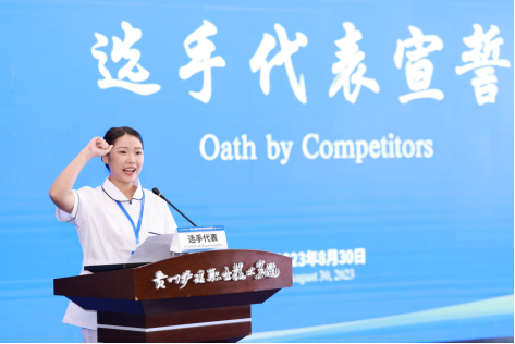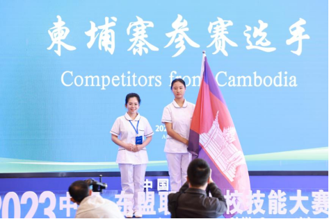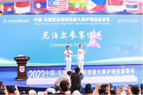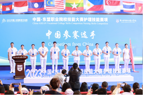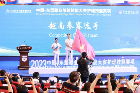 8月30日,2023中国-东盟教育交流周职业院校技能大赛护理技能赛项在伟德金海校区开赛。