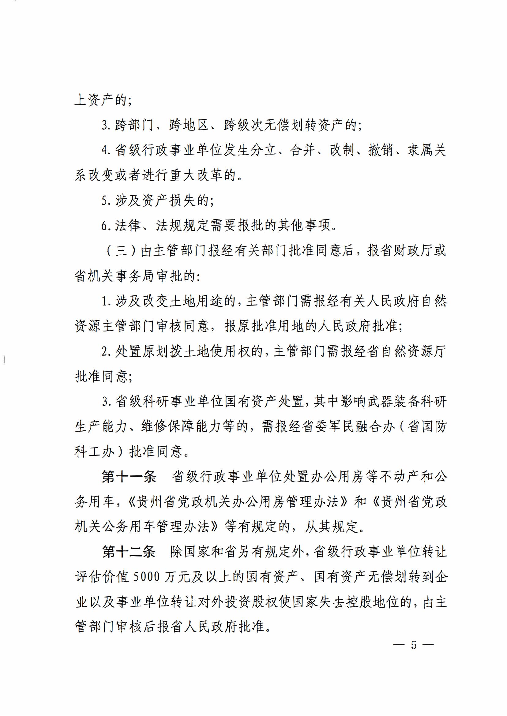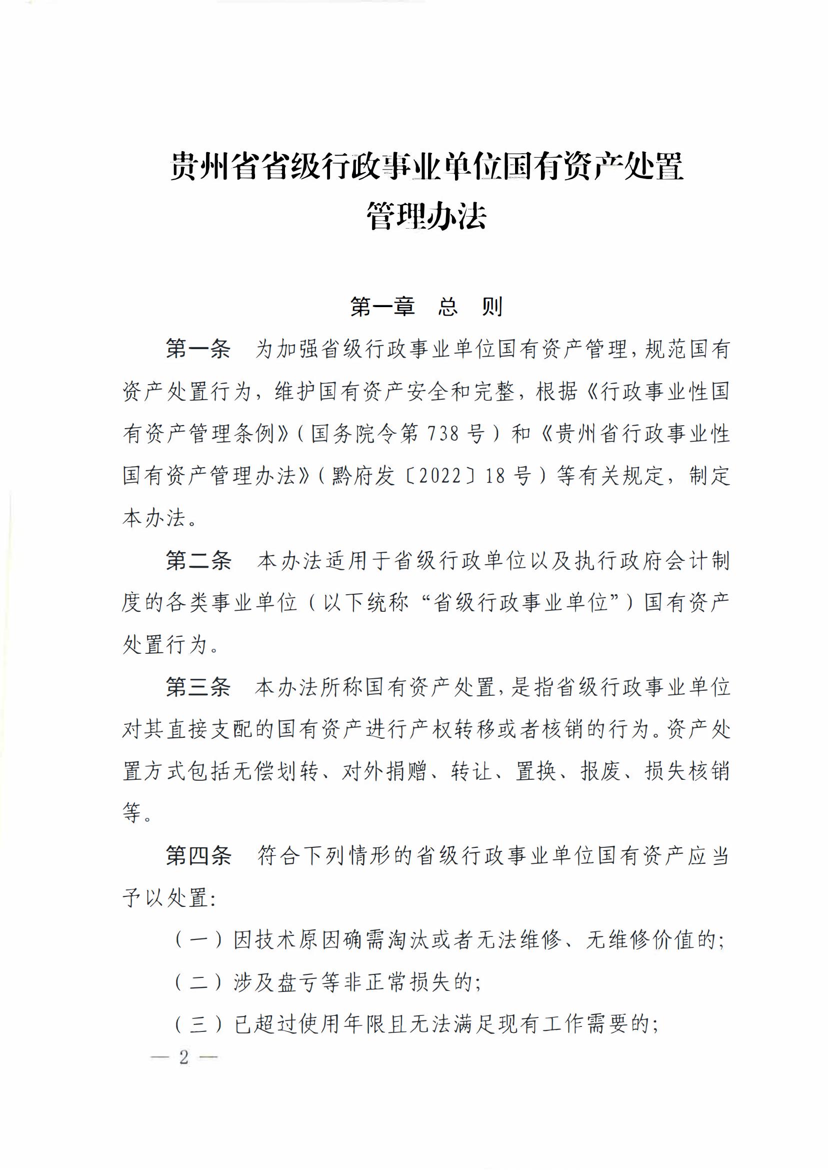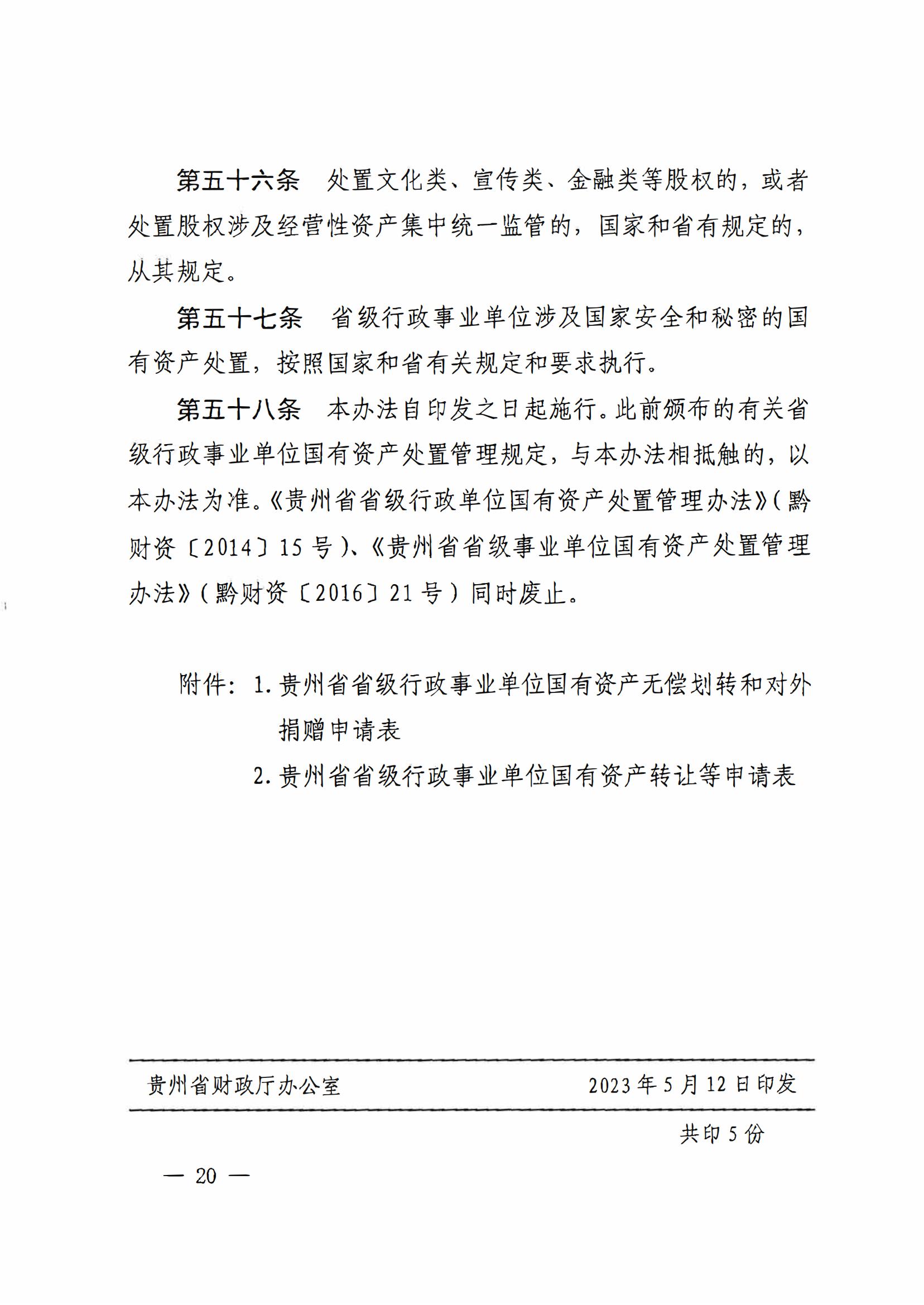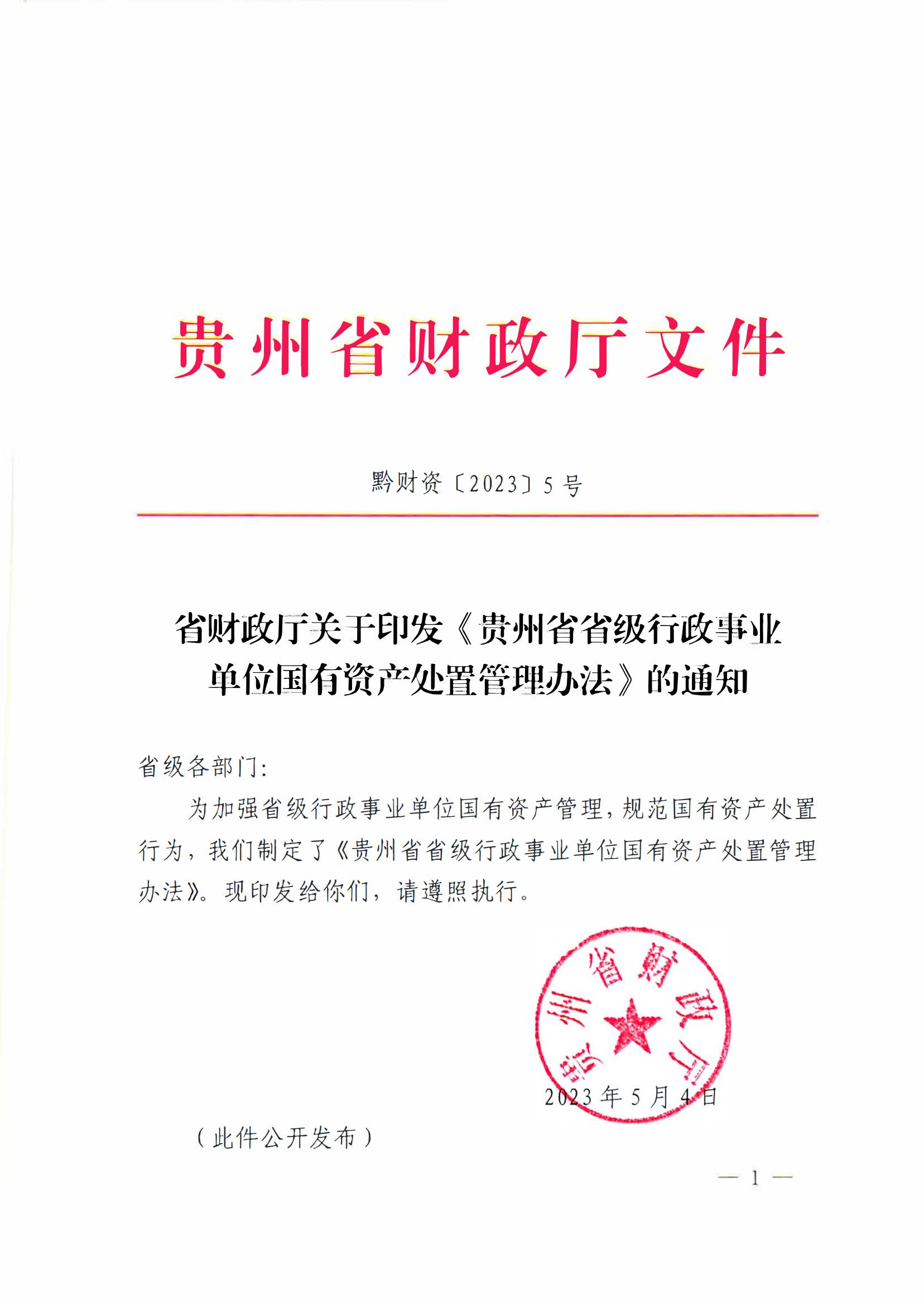 贵州省财政厅关于印发《贵州省省级行政事业单位国有资产处置管理办法》的通知(黔财资〔2023〕5号)