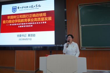 黄亚励强调,要坚持立德树人,办好人民满意的高职教育。全院党员干部要带头作表率,感恩思进、感恩奋进,深刻领会习近平总书记关于职业教育工作的重要论述精神;以生为本,以师为基,以习近平总书记的重要论述为根本遵循,办好人民满意的高职教育;牢记“三个务必”,衷心拥护“两个确立”、忠诚践行“两个维护”,用实实在在的高质量发展新成果检验主题教育成效,奋力谱写中国式现代化贵州实践新篇章!