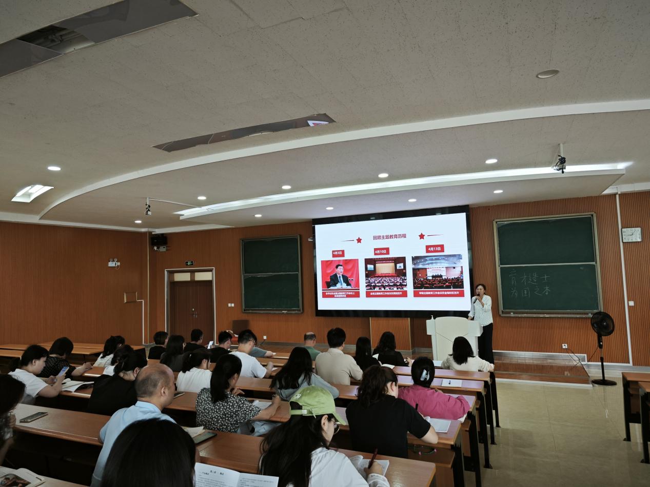 洪阳结合主题教育开展以来自身的学习收获、心得体会以及领题调研开展情况,从“深学笃行习近平新时代中国特色社会主义思想,牢固树立和践行正确政绩观”“学深悟透学习习近平总书记关于教育的重要论述,落实立德树人根本任务”“以高质量发展为第一要务,以党建为引领提升学院科研创新能力”三个方面和大家进行了分享交流。